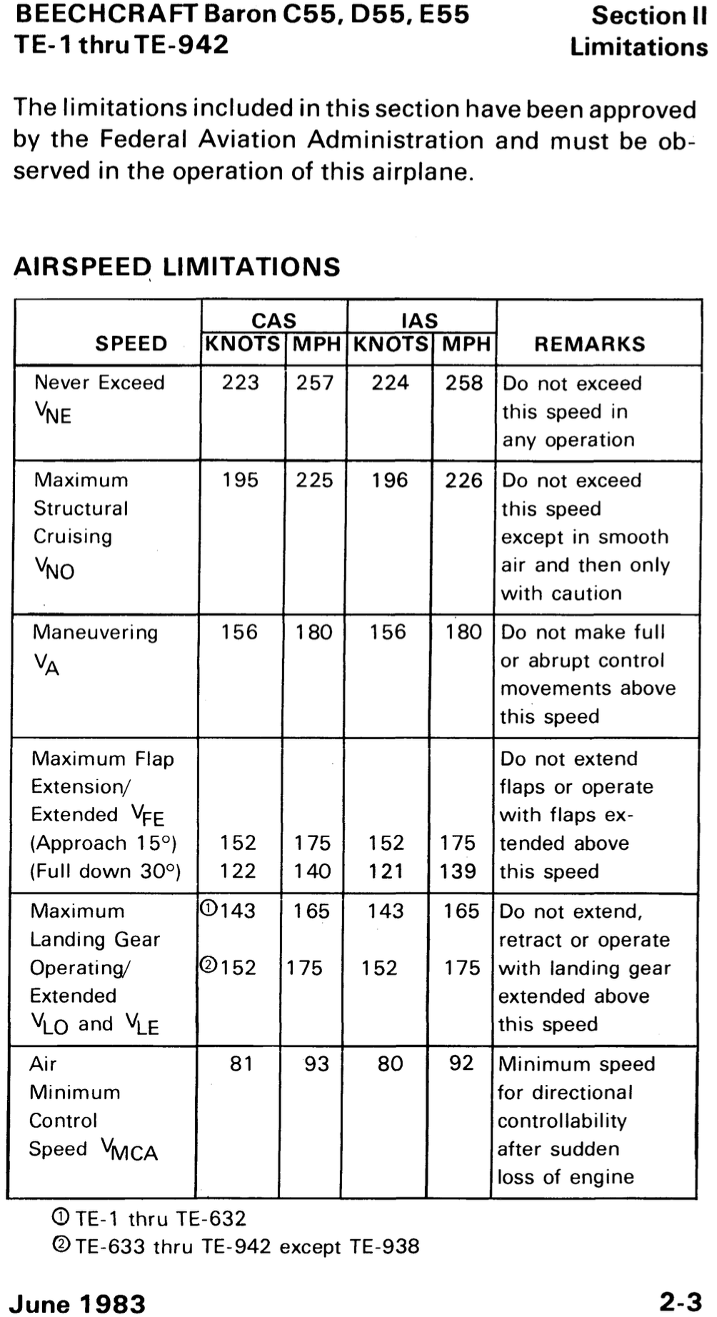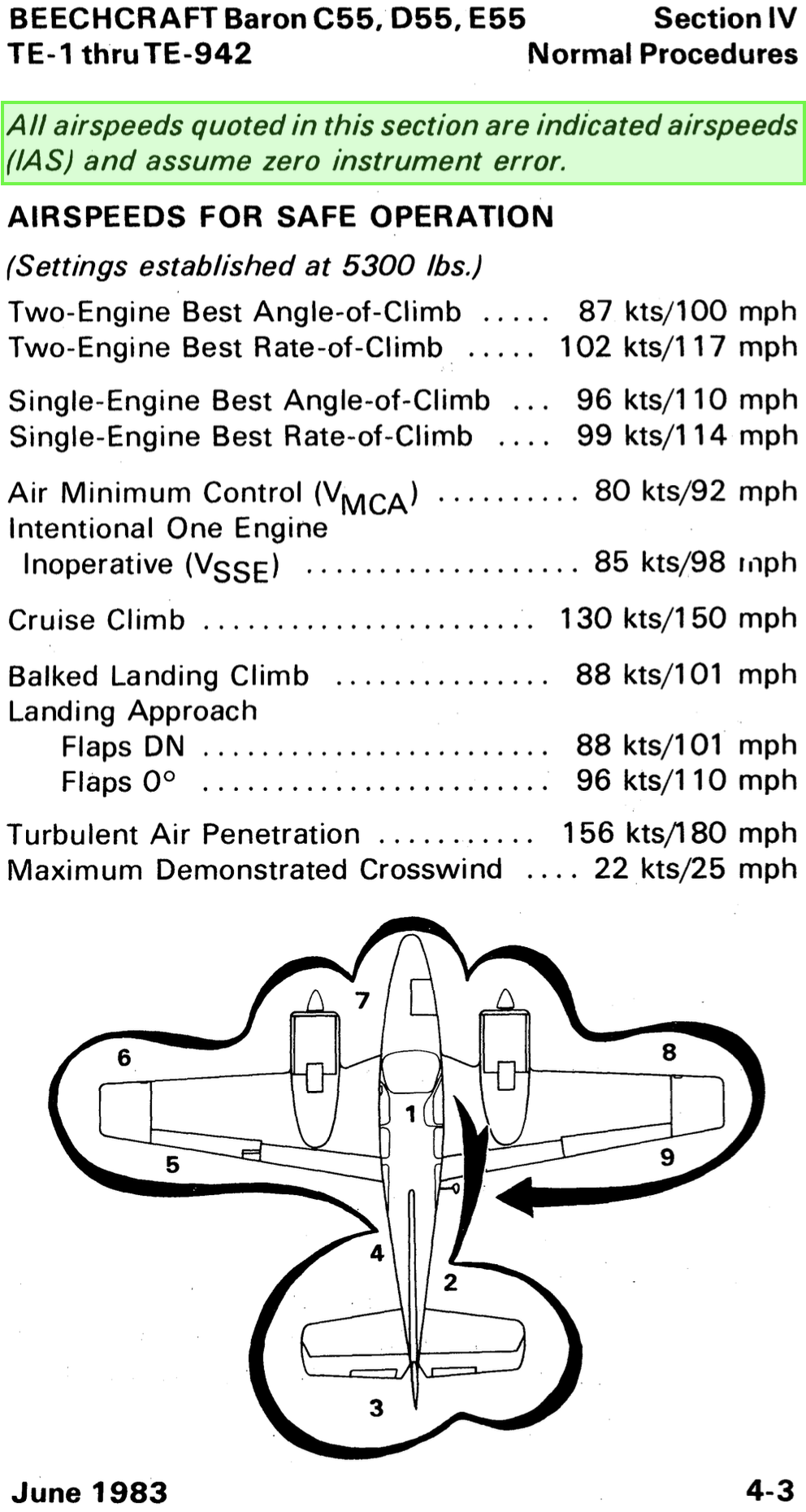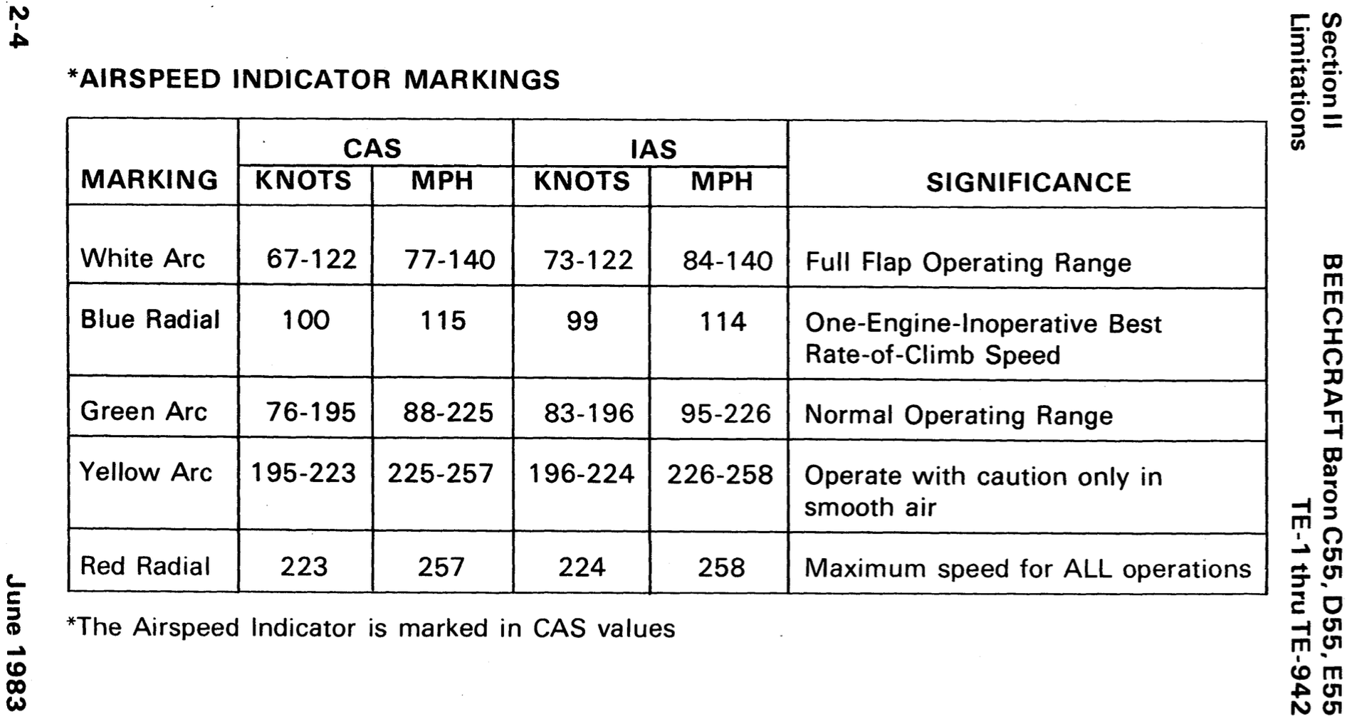 E55 Baron (N3622A) airspeed note: all airspeeds in IAS unless otherwise noted