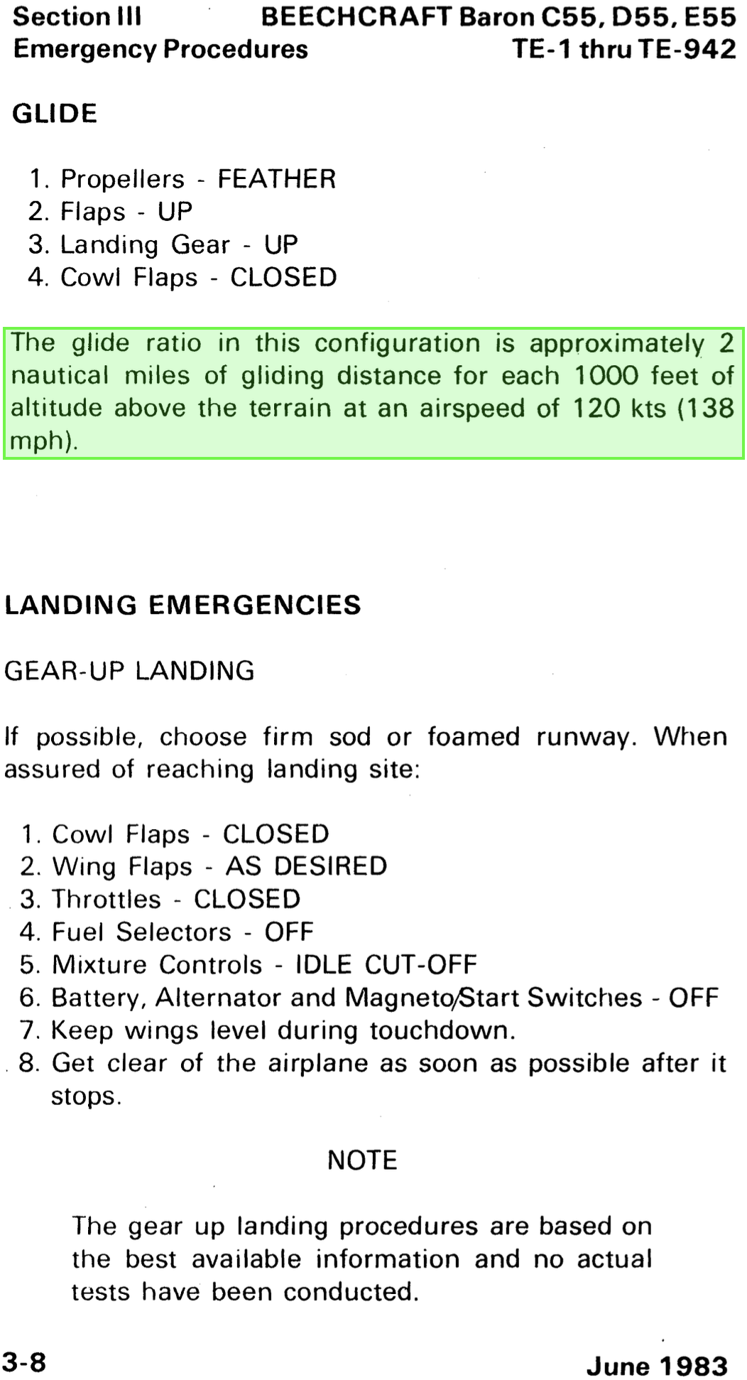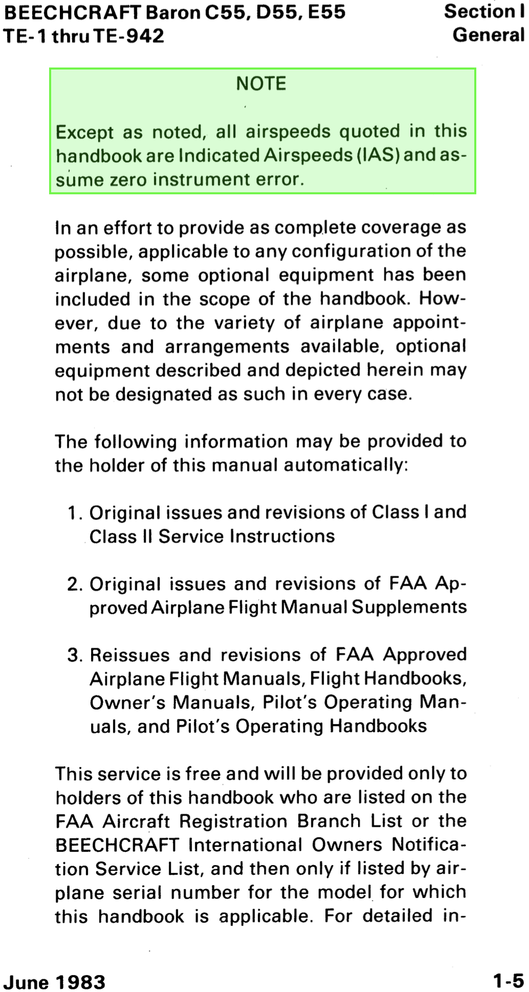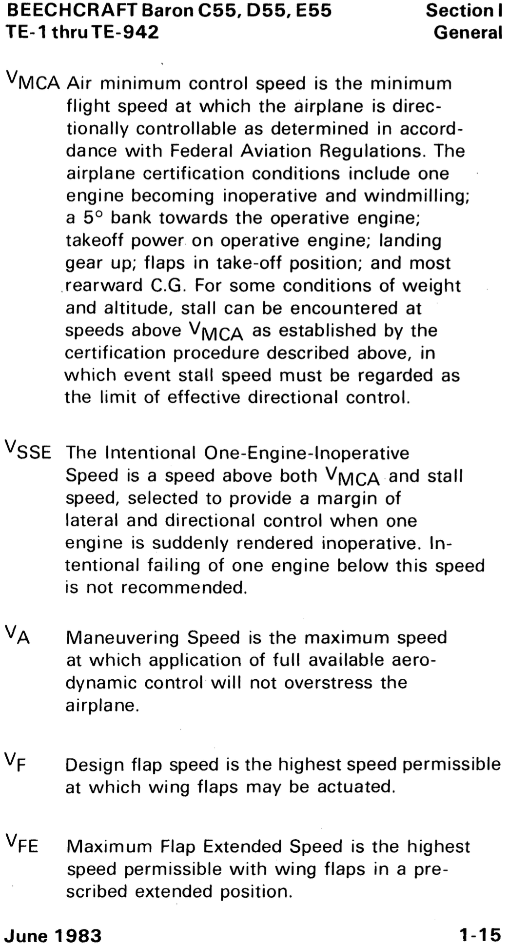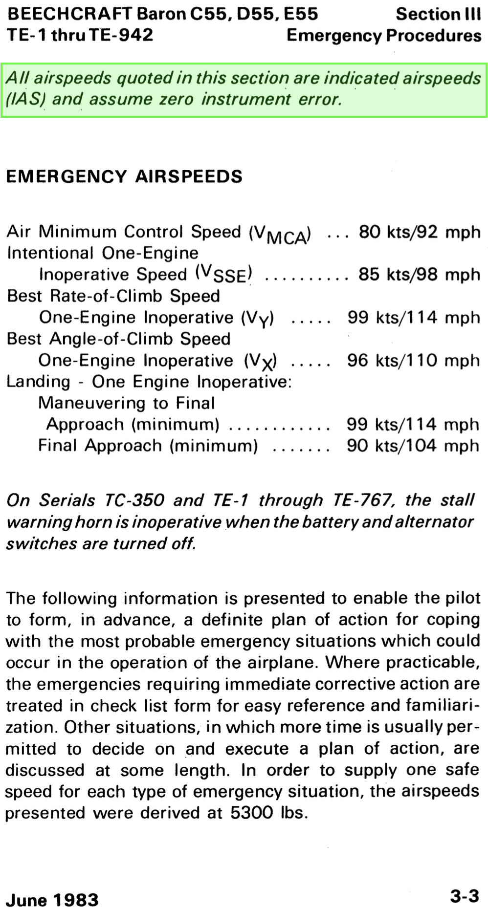 E55 Baron (N3622A) airspeed note: all airspeeds in IAS unless otherwise noted