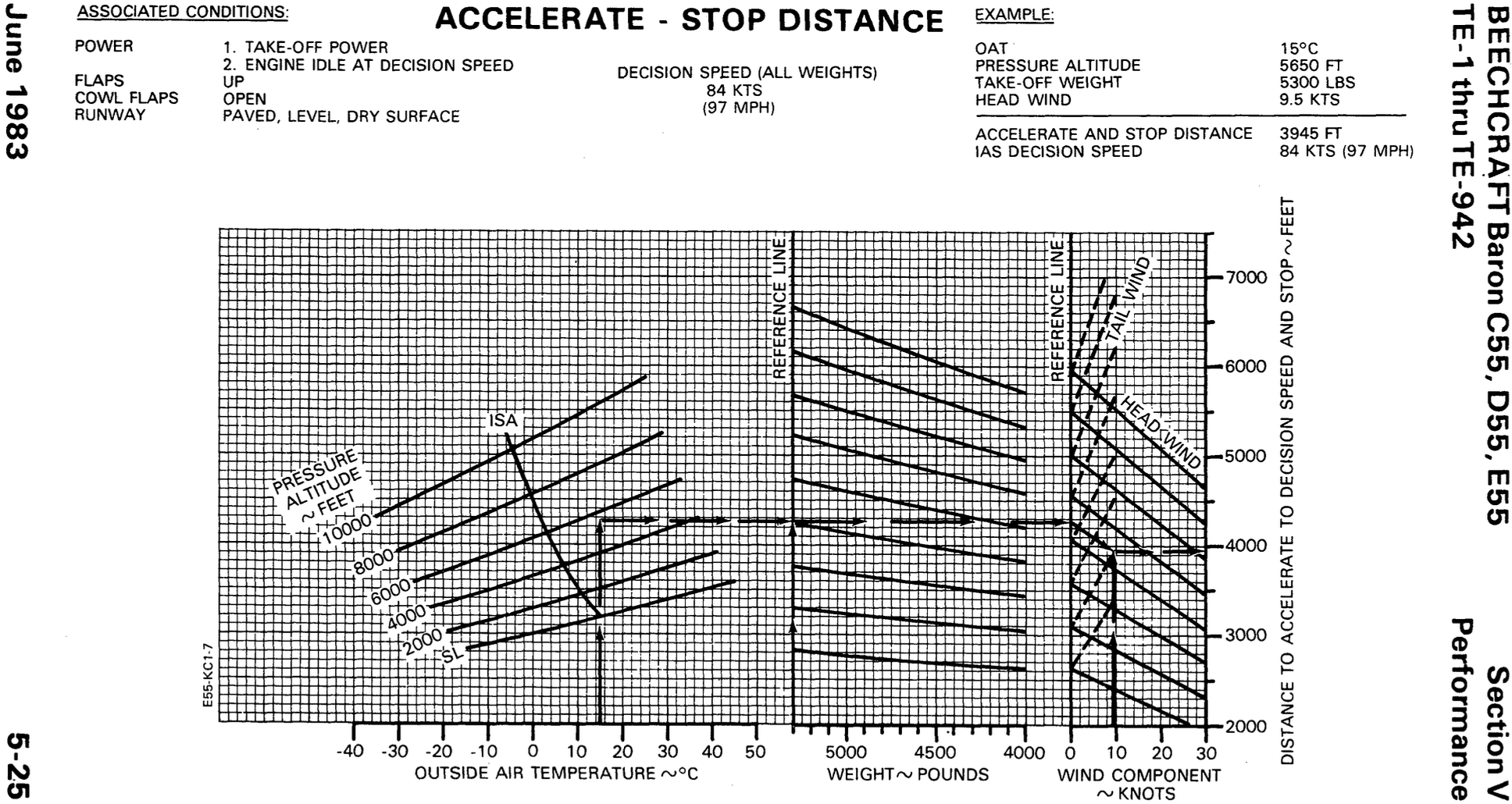 - Accelerate-stop distance on a hot day at fairly high pressure altitude, maximum weight, and no headwind should be less than 5,000 ft.
