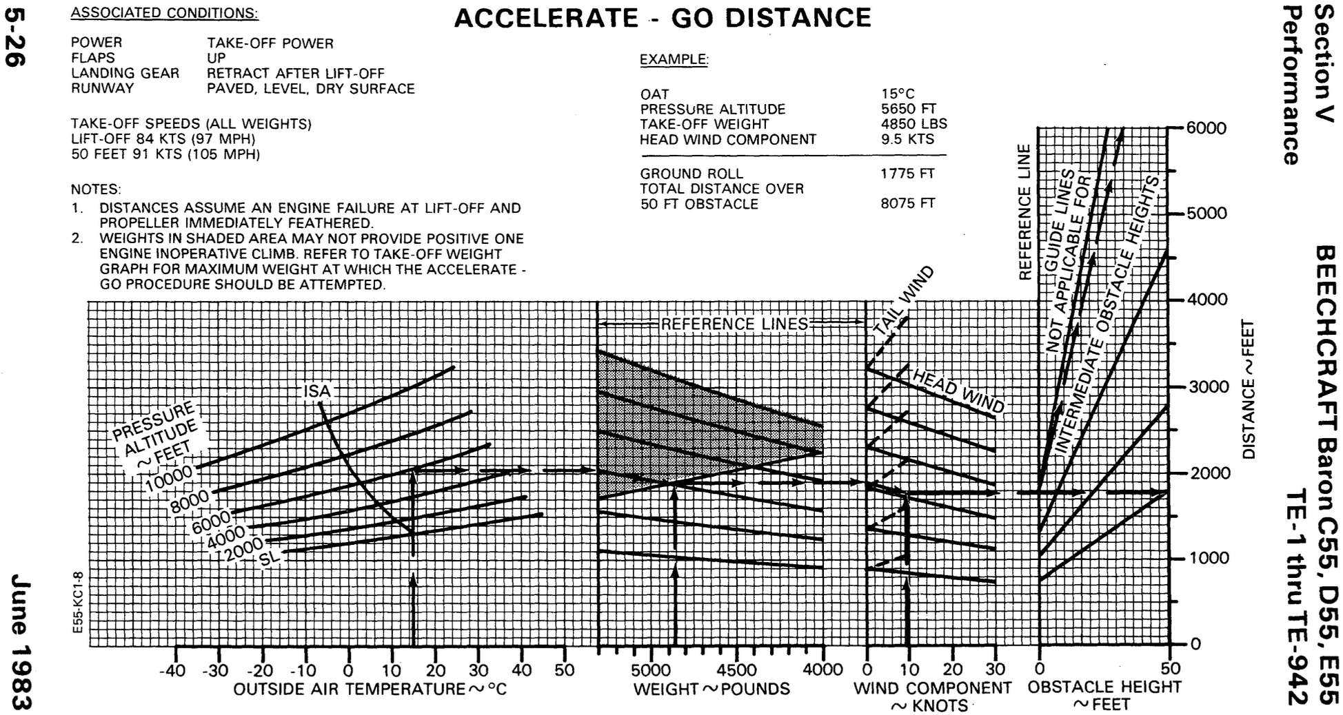 - The POH example for accelerate-go distance is the same as that for accelerate-stop, but 450 lb lighter and this resulted in an accelerate-go distance (clearing 50 ft. obstacle) of 8,100 ft.