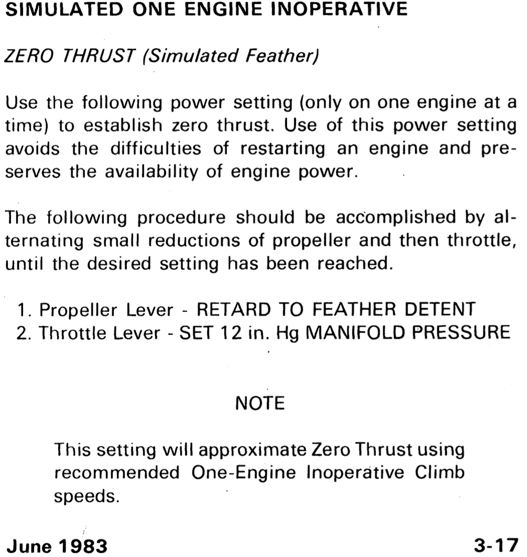 - When scissoring from one engine high power and the other one idle or simulated feather, bring the high power engine back to 15" first, then the low power engine up to 15" second.