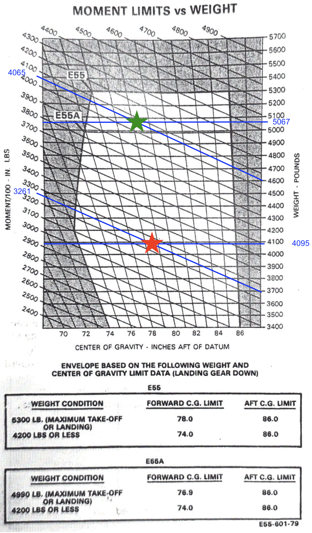 E55 Baron (N322ET) weight and balance graph