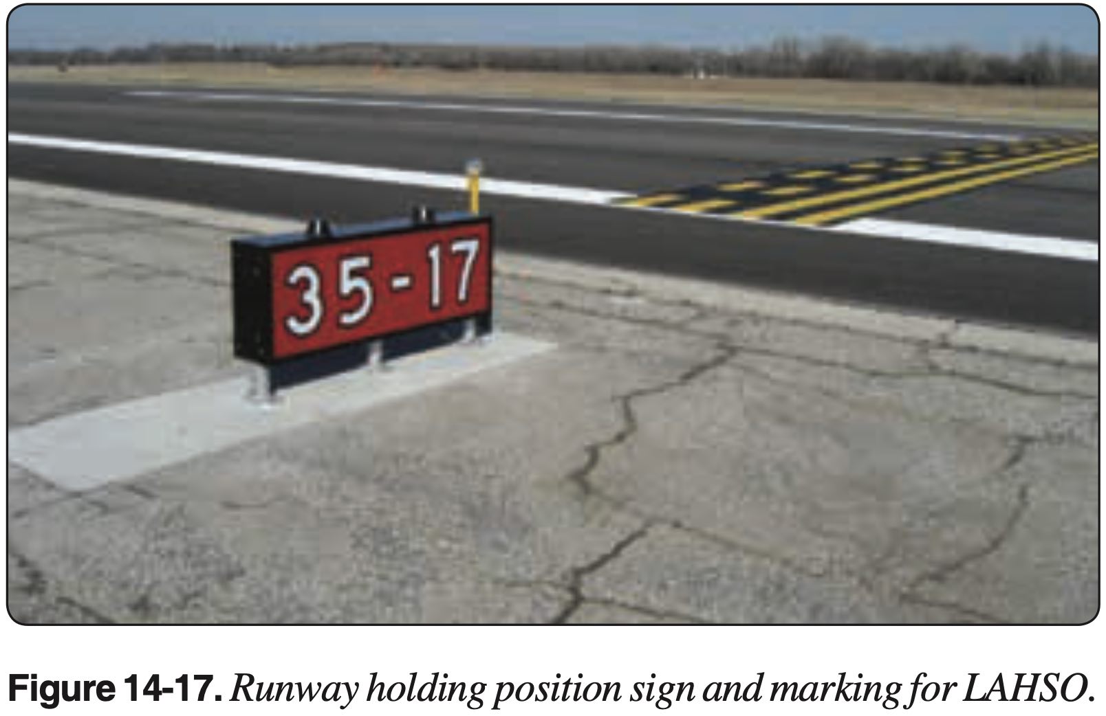 - May encounter runway hold markings on a runway even when not conducting LAHSO operations, as sometimes will be given clearance to taxi on a runway (and hold short of intersecting runway)