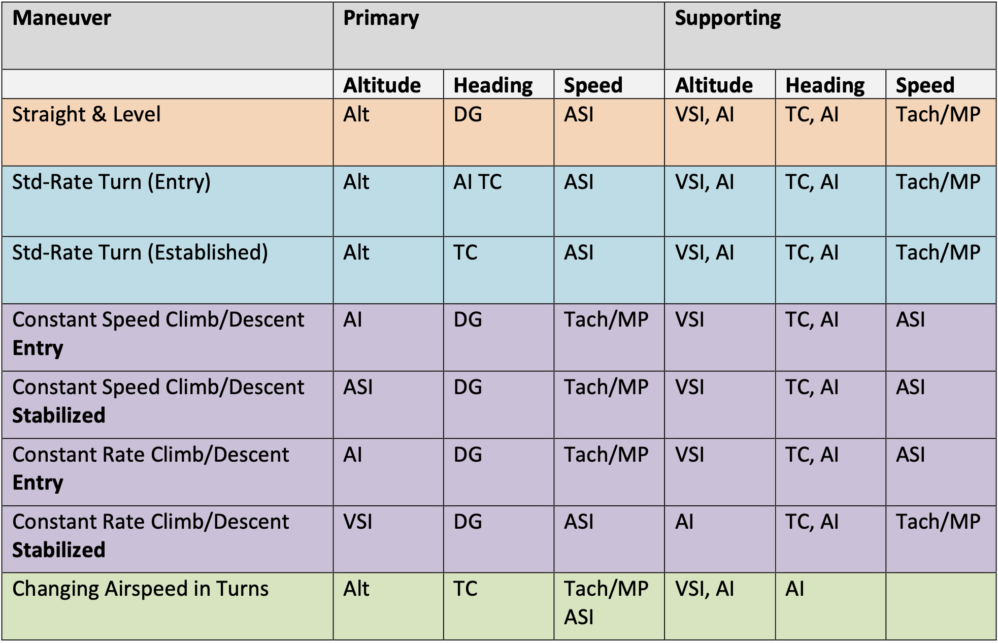 - Focuses more on the instruments that depict the most accurate indication for the aspect of the aircraft attitude being controlled