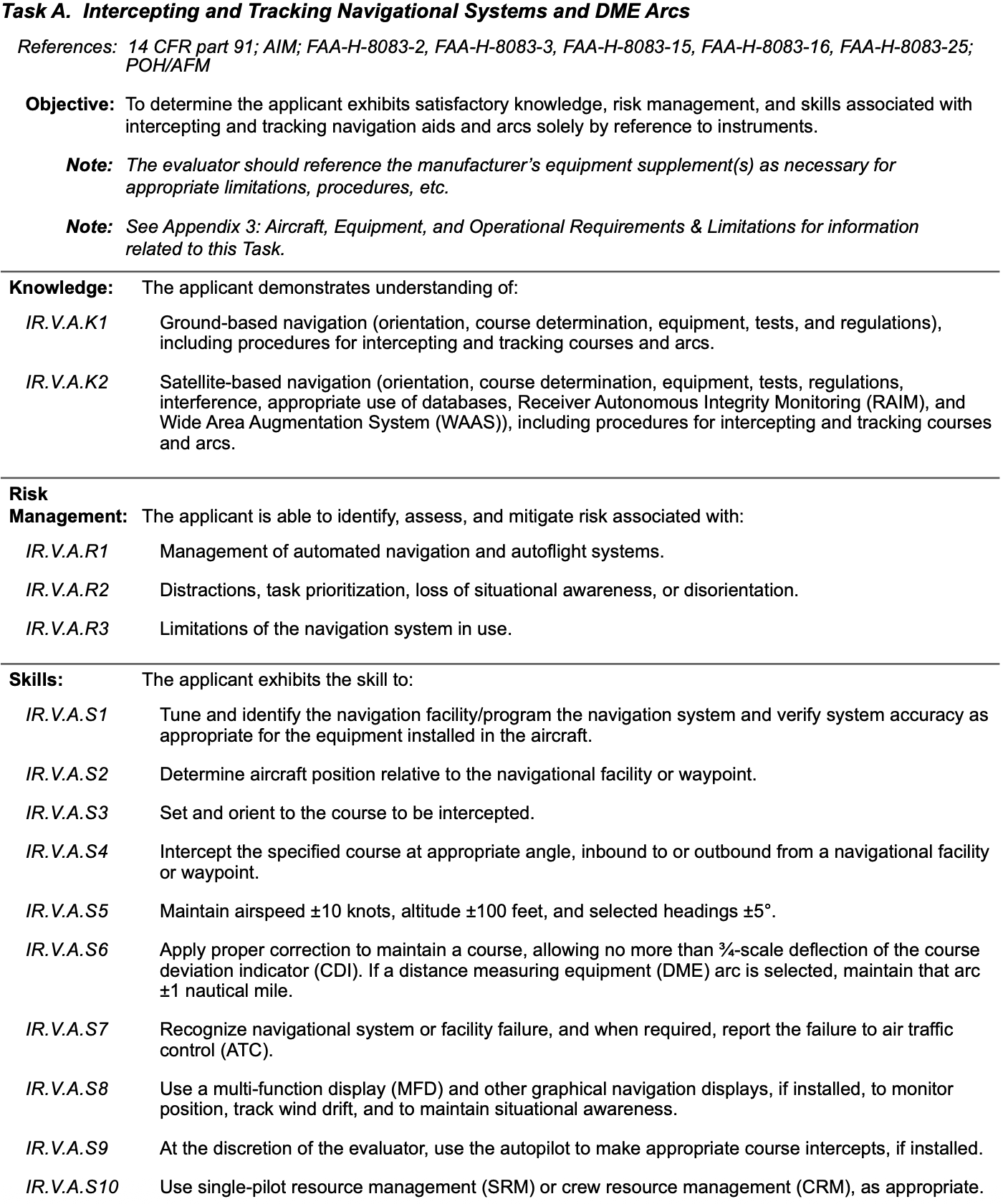 This page covers Task A. Intercepting and Tracking Navigational Systems and DME Arcs from the FAA-S-8081-9E Flight Instructor Instrument Practical Test Standards.