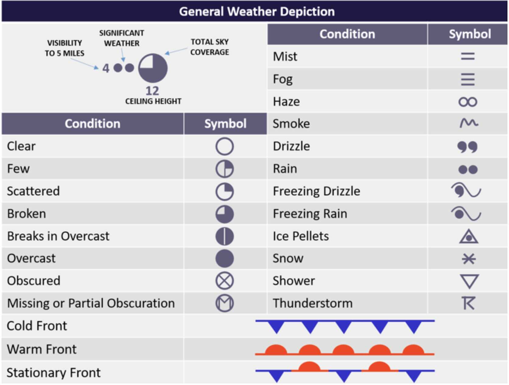 - See FAA-H-8083-25B Pilot's Handbook of Aeronautical Knowledge Chapter 13: Aviation Weather Services