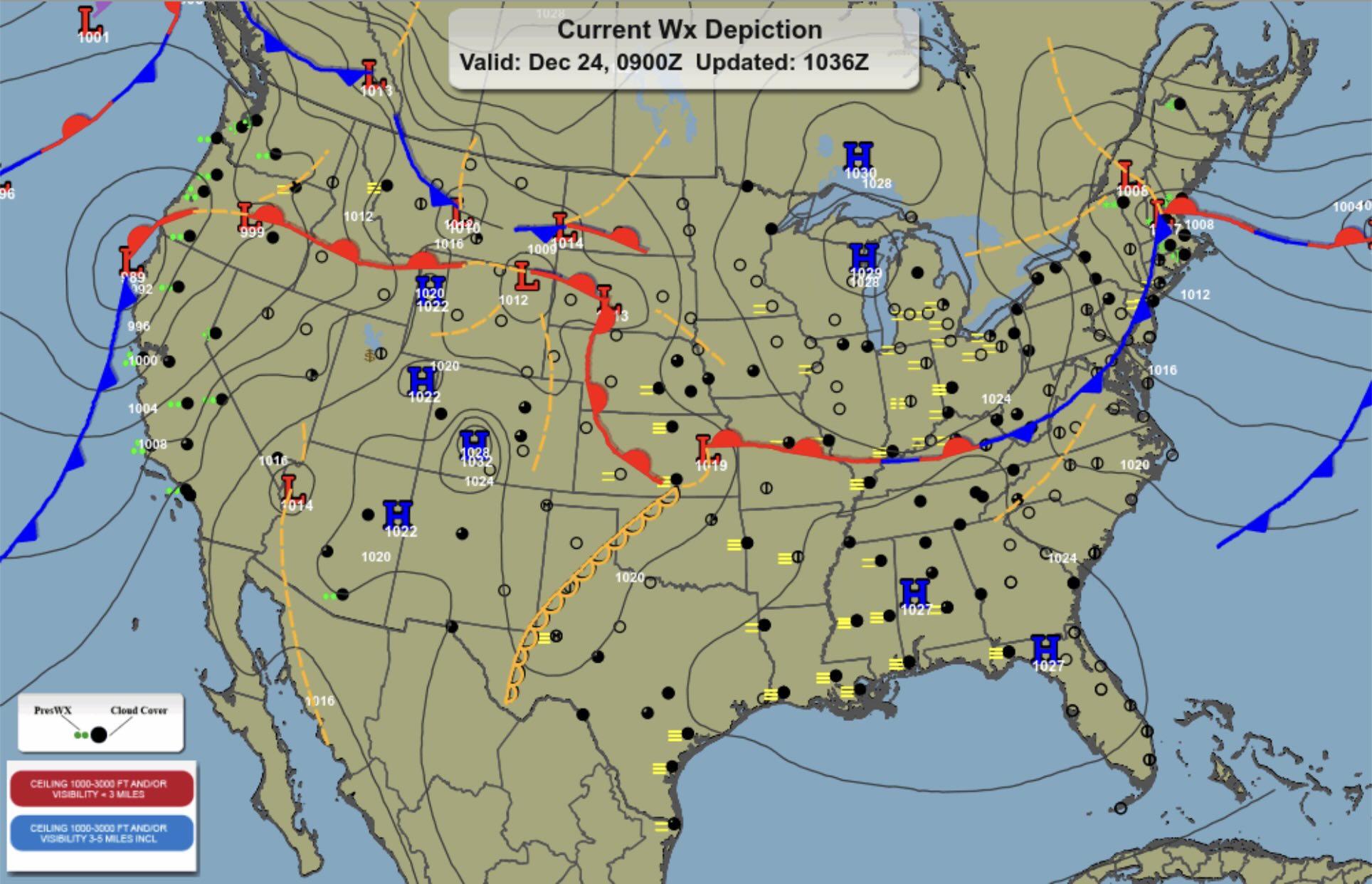 - Forecast of VMC, clouds, general weather conditions across multiple states