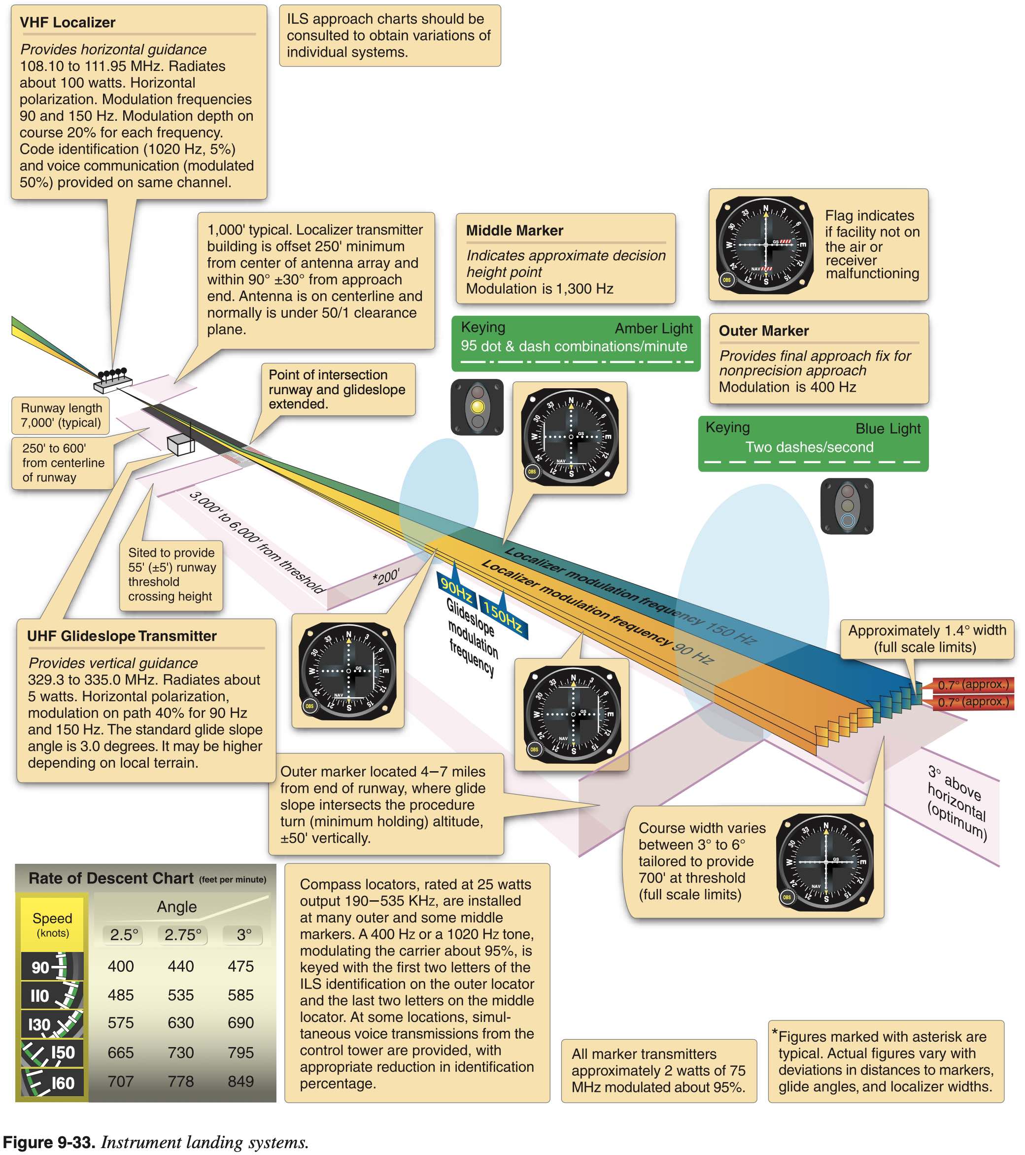 - Glideslope: Usually a 3° slope, with 1.4° total width.