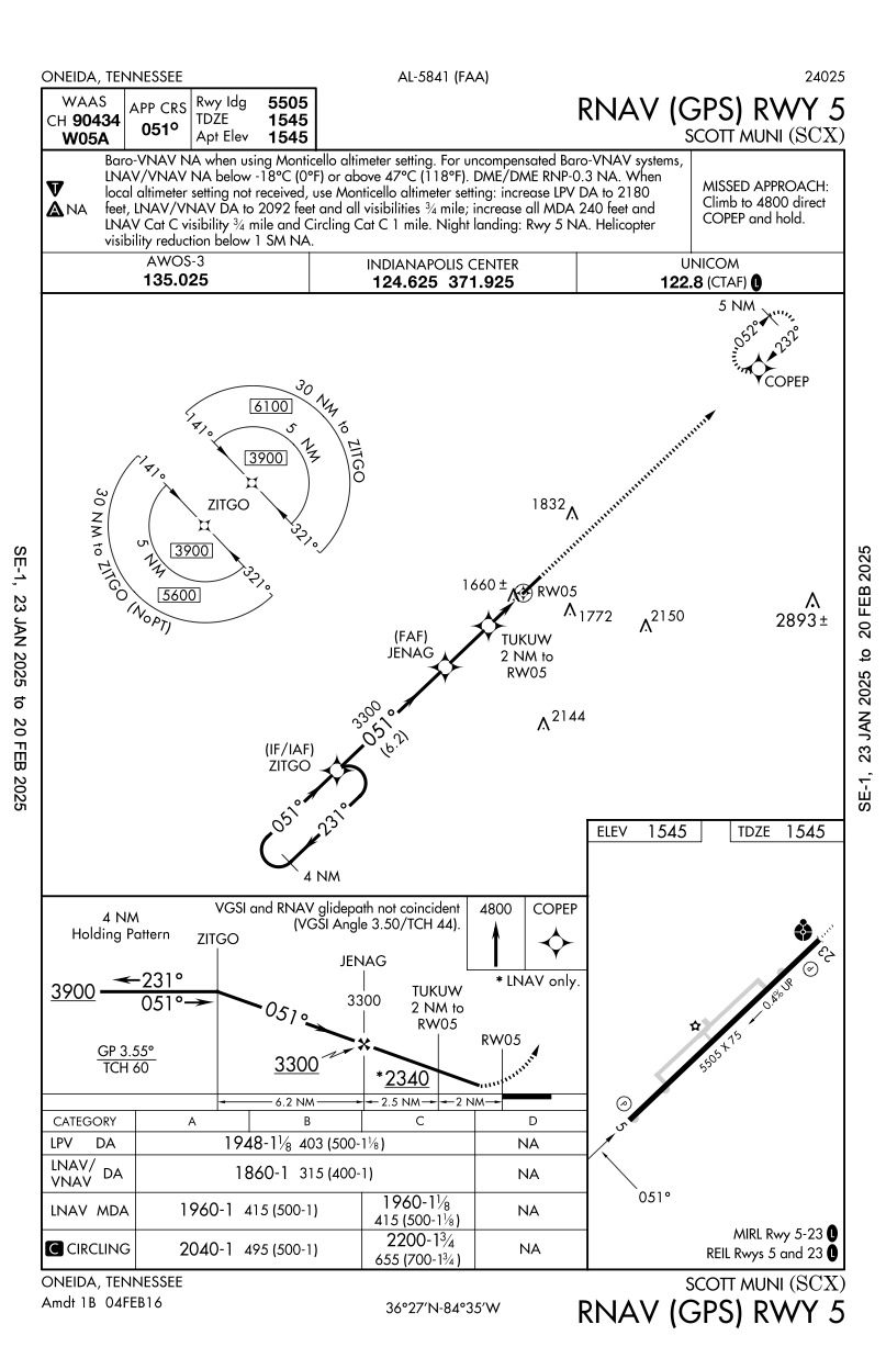 - Relatively uninteresting, but despite the fact that GPS approaches are not constrained in their design by ground-based navaids, and therefore seems they should always be designed as straight-in approaches, terrain or other factors might constrain them to being circling-only approaches as below.