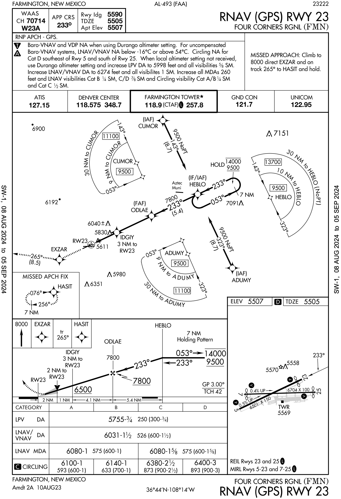 - Planned instrument approach procedures and potential alternate approaches that might be likely